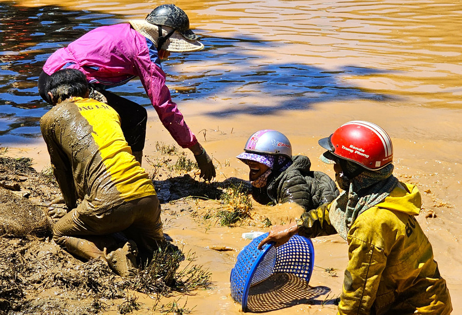 | Trời càng trưa nắng, số lượng người đổ về đánh bắt cá tạo nên khung cảnh nhộn nhịp. |