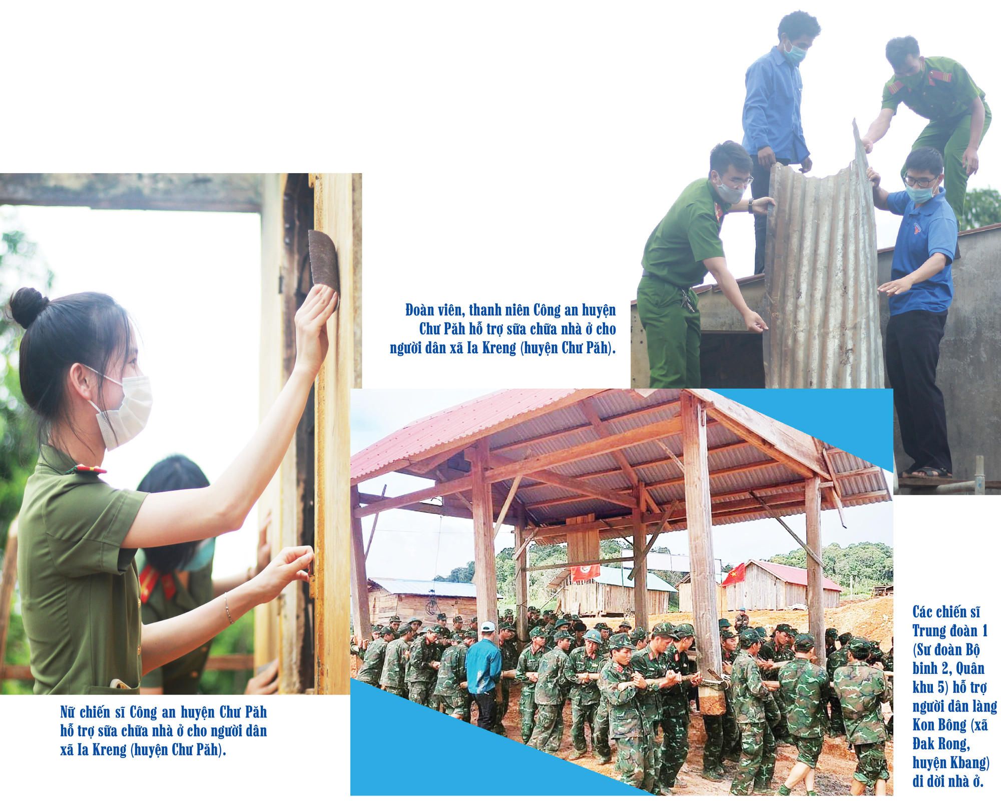 Tại làng Le 1 và làng Gào (xã Ia Lang, huyện Đức Cơ), người dân vui mừng khi được 61 cán bộ, chiến sĩ Tiểu đoàn 1 (Trung đoàn 48, Sư đoàn 320) về thực hiện chiến dịch “Hành quân xanh”. Gia đình chị Siu Mong (SN 1992, hộ nghèo ở làng Le 1) được các chiến sĩ hỗ trợ xây dựng căn nhà “Đại đoàn kết”. Từ nguồn kinh phí 40 triệu đồng của Ủy ban MTTQ Việt Nam huyện Đức Cơ, gia đình vay mượn thêm 10 triệu đồng, các chiến sĩ của Tiểu đoàn 1 đã chung tay xây dựng căn nhà có 1 phòng khách, 1 phòng ngủ, 1 phòng bếp cho gia đình. Nhìn căn nhà xây kiên cố đang dần hoàn thiện, chị Siu Mong vui mừng chia sẻ: “Nhà tôi thuộc diện hộ nghèo. Nếu không có sự hỗ trợ thì không biết bao giờ gia đình mới có nhà xây để ở. Thời gian tới, cả nhà không còn phải lo lắng mỗi khi trời mưa nữa”.