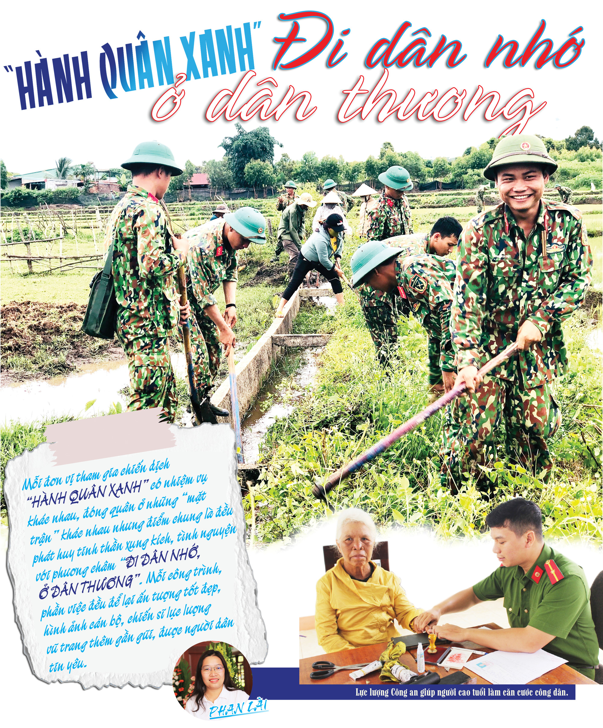 “Hành quân xanh” là 1 trong 5 nội dung của Chiến dịch Thanh niên tình nguyện hè 2022 do Tỉnh Đoàn phát động trong thanh niên khối lực lượng vũ trang. Với những hoạt động ý nghĩa, chiến dịch “Hành quân xanh” trong khối lực lượng vũ trang đã góp phần làm nên một mùa hè tình nguyện sôi nổi, ý nghĩa đối với cộng đồng. Tùy theo đặc thù công việc, từng đơn vị đã tham gia thực hiện những phần việc khác nhau, đóng quân ở những địa bàn khác nhau nhưng điểm chung đều hướng về vùng khó khăn.