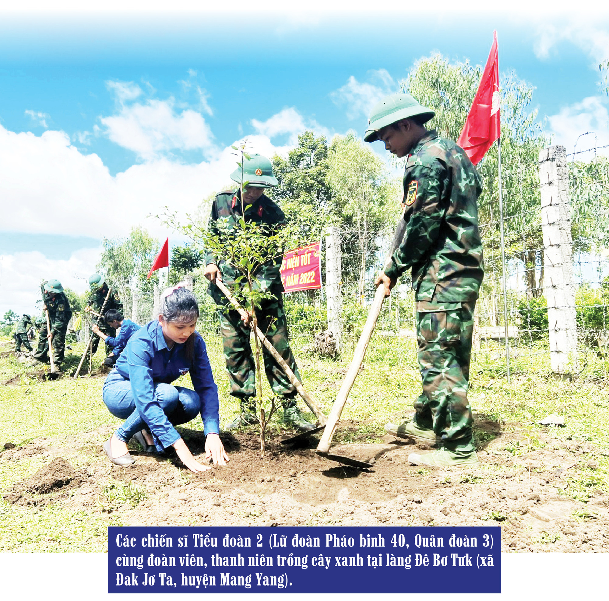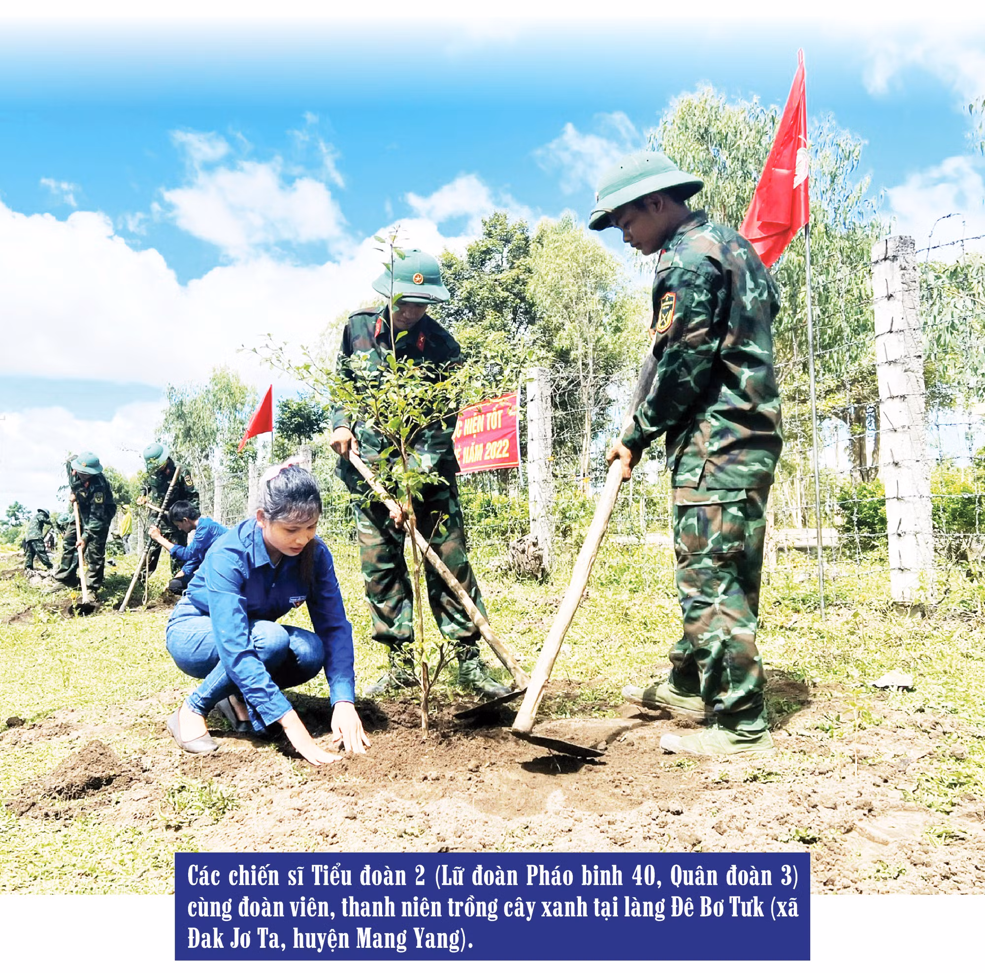 Thời tiết ở làng Đê Bơ Tưk (xã Đak Jơ Ta, huyện Mang Yang) những ngày này rất oi bức. Tuyến kênh mương dẫn nước cho cả cánh đồng cỏ dại mọc ken dày, cản trở dòng chảy. 8 chiến sĩ của Tiểu đoàn 2 (Lữ đoàn Pháo binh 40, Quân đoàn 3) được giao nhiệm vụ giúp dân khơi thông dòng nước. Người cầm rựa phát dọn bụi rậm, người cầm cuốc, xẻng nạo vét bùn đất dưới lòng mương. Lưng áo cán bộ, chiến sĩ ướt đẫm mồ hôi nhưng ai cũng hào hứng, quyết tâm hoàn thành phần việc được giao.