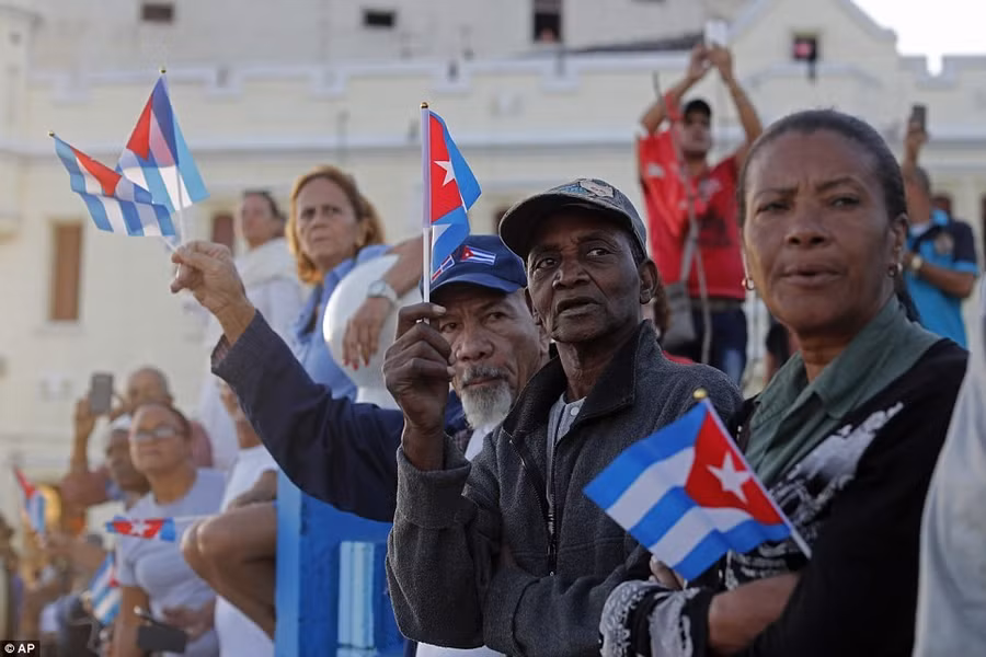 Đoàn xe đi ngang đài tưởng niệm nhà thơ Jose Marti, một anh hùng dân tộc của Cuba, và rời Quảng trường Cách mạng ở thủ đô.
