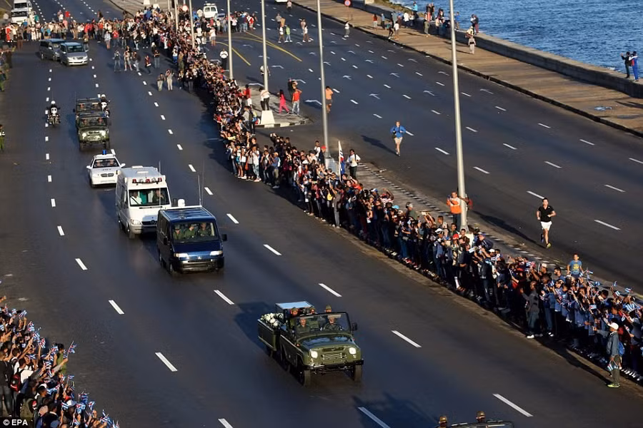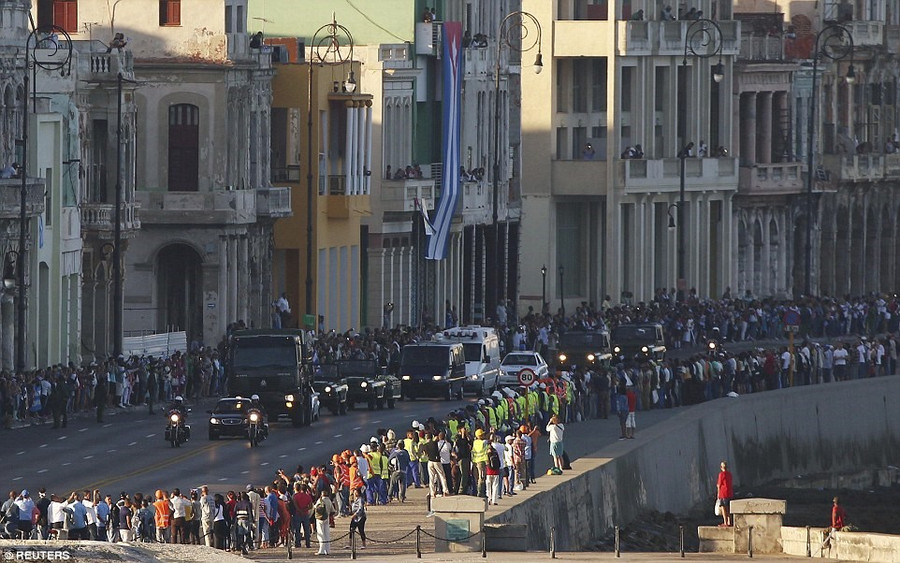 Người dân tập trung quanh đại lộ Malecon để tiễn lãnh tụ Fidel. Tuyến đường được thiết kế nhằm tái hiện lại những con đường mà Fidel và các đồng đội đã đi qua sau khi lật đổ thành công nhà độc tài Batista năm 1959.