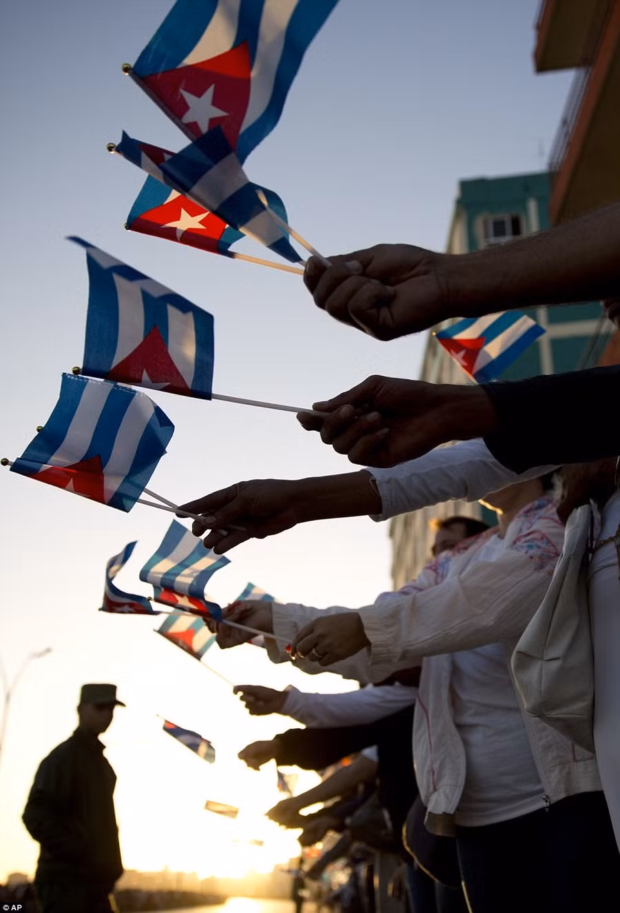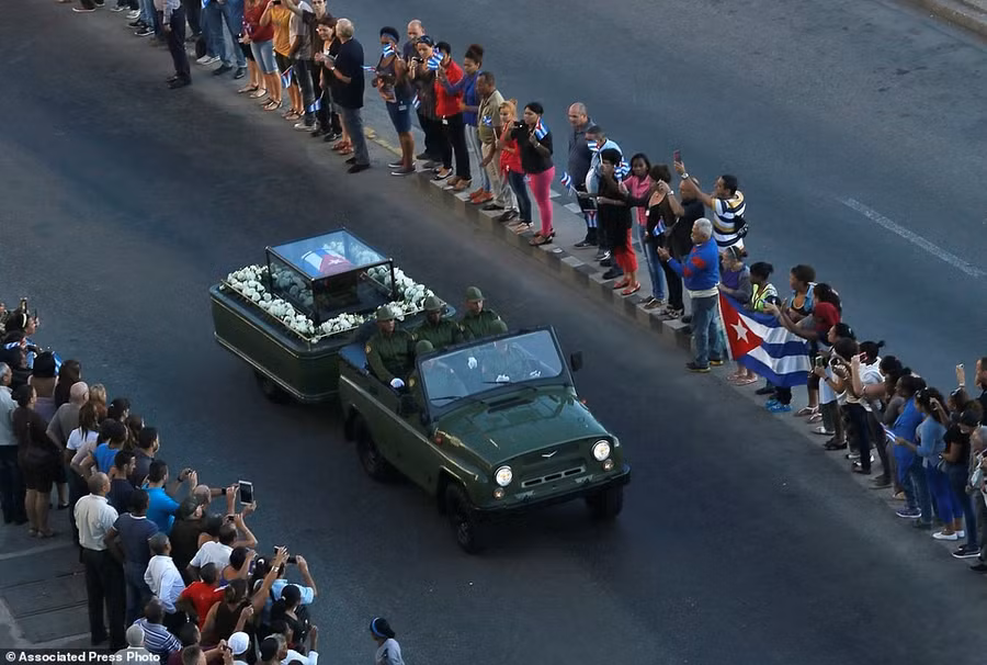 Hàng nghìn người dân Cuba xếp hàng dọc những đoạn đường mà đoàn xe đi qua để đưa tiễn lãnh tụ Fidel, người đã lãnh đạo đất nước Cuba trong 50 năm.