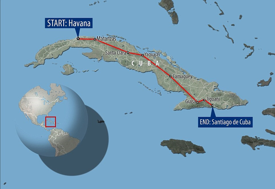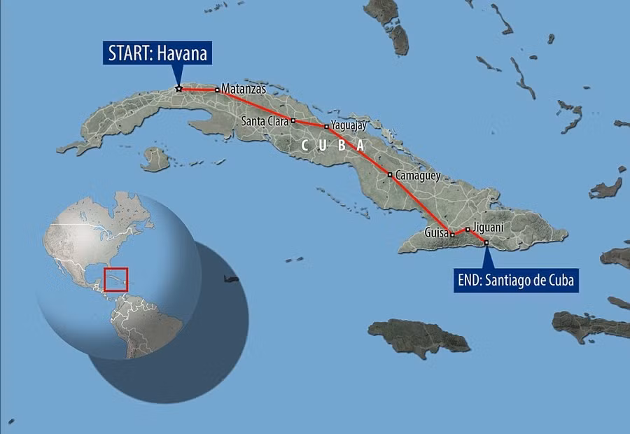Tro cốt của lãnh tụ Fidel được đặt trong một quan tài gỗ có quốc kỳ Cuba quấn quanh. Đoàn xe xuất phát từ trụ sở Bộ Quốc phòng ở thủ đô Havana, dự kiến kết thúc hành trình 800 km trong 4 ngày.