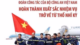 Chiều 19/2, Bộ Công an đã tổ chức lễ đón Đội tìm kiếm cứu nạn và cứu hộ hoàn thành nhiệm vụ trở về từ Thổ Nhĩ Kỳ.