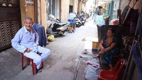 | Vợ ông Võ Văn Phê, một người dân hẻm đã 95 tuổi, ở đây từ thời nhà còn thuê của Chú Hỏa - Ảnh: LÊ VÂN |