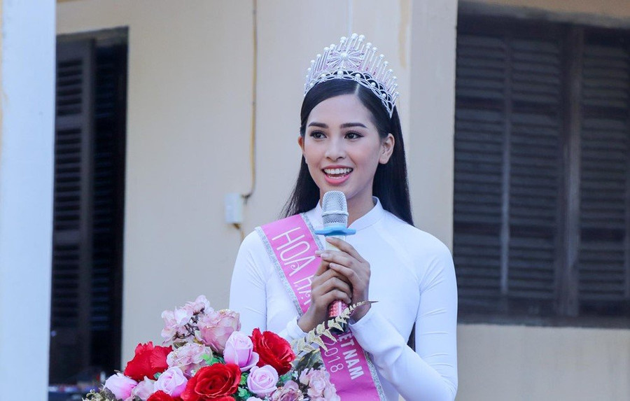 Sau khi đăng quang ngôi vị Hoa hậu Việt Nam 2018, Trần Tiểu Vy vừa có chuyến về thăm trường cũ THPT Trần Quý Cáp tại quê nhà Hội An. Tại đây, cô đã có dịp dự lễ chào cờ đầu tuần và trao học bổng cho lứa đàn em.