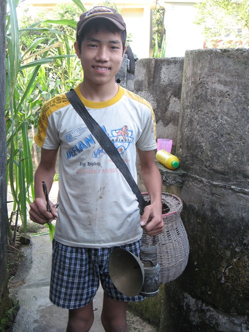 Một em bé làng Xuân Tiêu hôm nay mô tả lại hình ảnh dụng cụ bố mình làm nghề săn rắn