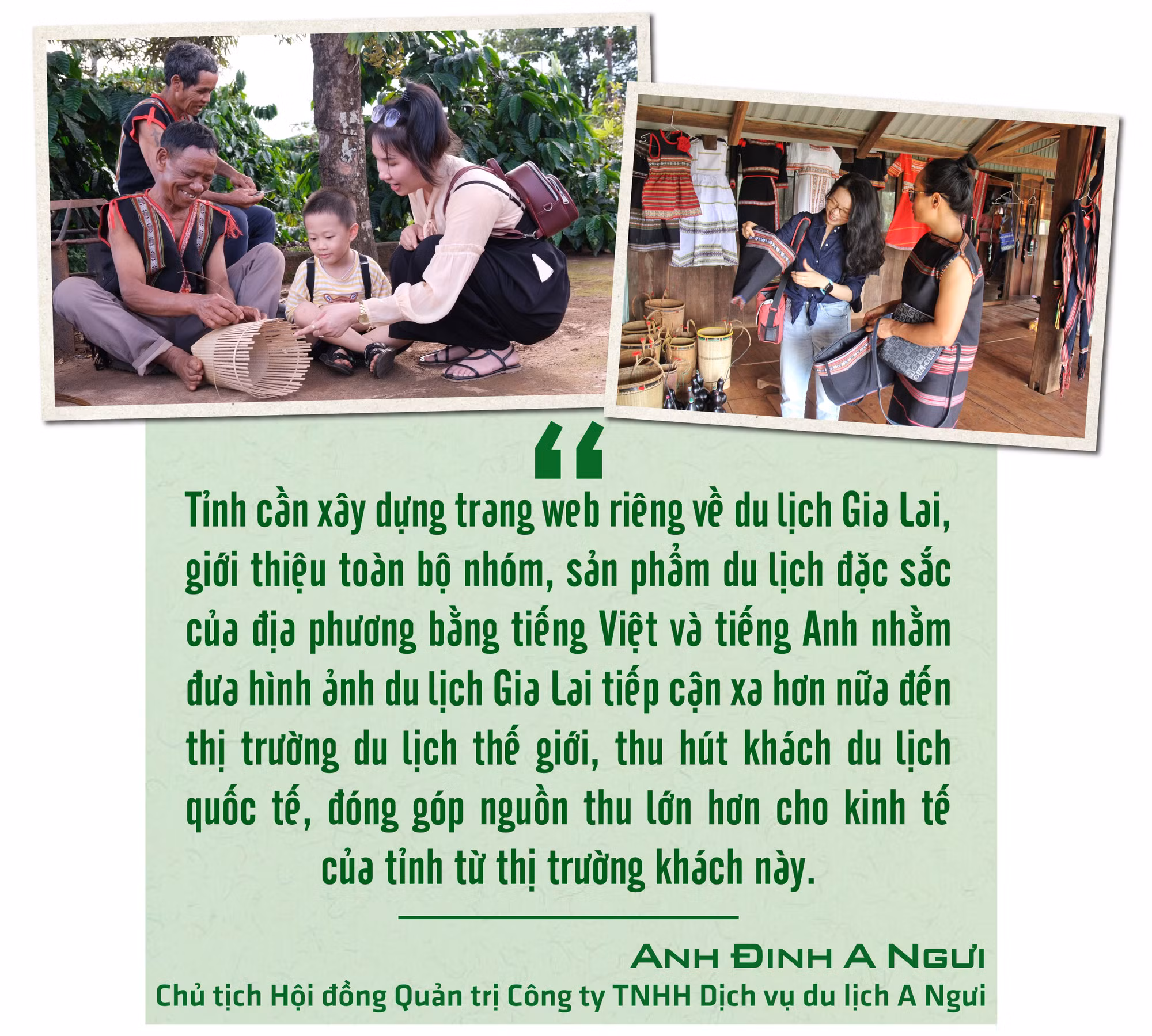 Là doanh nghiệp kinh doanh du lịch dựa vào cộng đồng bản địa khá thành công ở vùng đất phía Đông tỉnh Gia Lai, anh Đinh A Ngưi-Chủ tịch Hội đồng Quản trị Công ty TNHH Dịch vụ du lịch A Ngưi cho rằng, Gia Lai nói riêng và khu vực Tây Nguyên nói chung rất giàu về tài nguyên văn hóa, thiên nhiên để khai thác, phát triển bền vững du lịch. Tuy nhiên, việc quảng bá chưa mạnh, chưa đủ hấp dẫn. “Tỉnh cần đẩy mạnh truyền thông du lịch. Sở Thông tin và Truyền thông cũng cần vào cuộc, xây dựng đề án, chiến lược về truyền thông du lịch, tăng cường tập trung vào các kênh mạng xã hội, báo chí, quảng bá thương hiệu...”-anh A Ngưi nêu quan điểm.