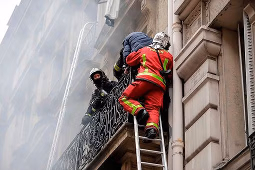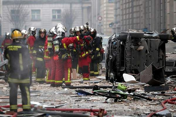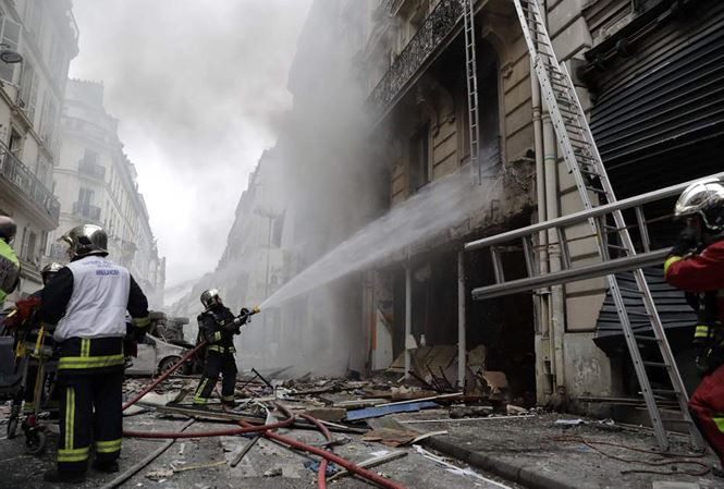 Lính cứu hỏa Paris đang dập đám cháy sau vụ nổ,