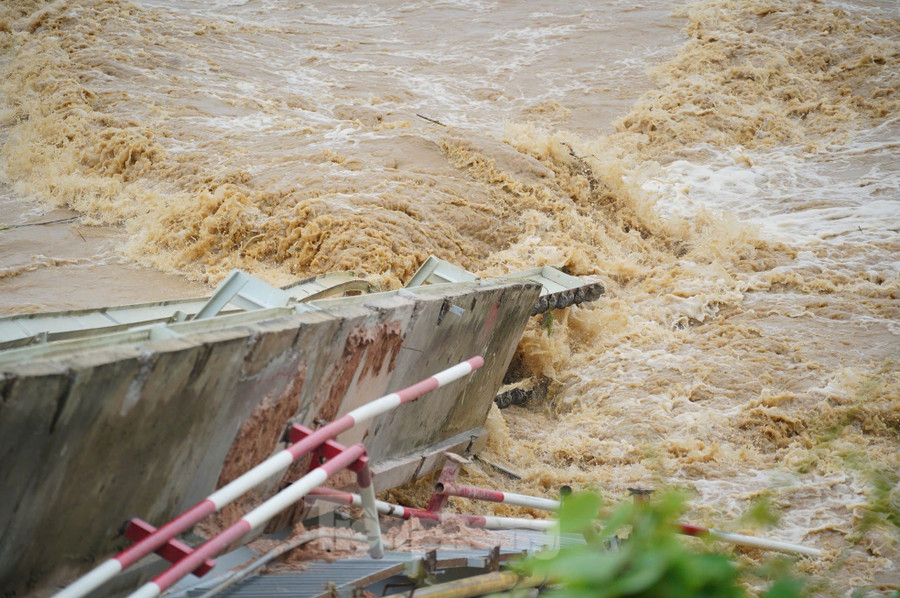 | Sáng 9/9, cầu Phong Châu bắc qua sông Hồng trên quốc lộ 32C, nối liền hai huyện Lâm Thao và Tam Nông (Phú Thọ) bị sập. Thời điểm này, nhiều người đang tham gia giao thông. Ảnh: Hoàng Mạnh Thắng. |