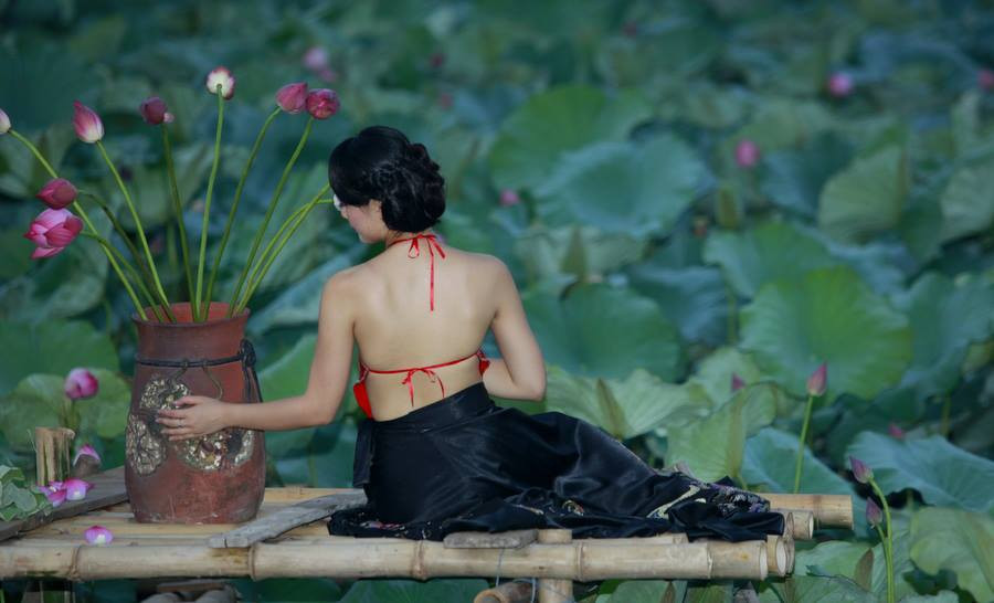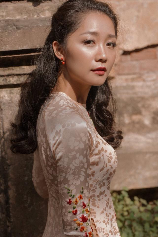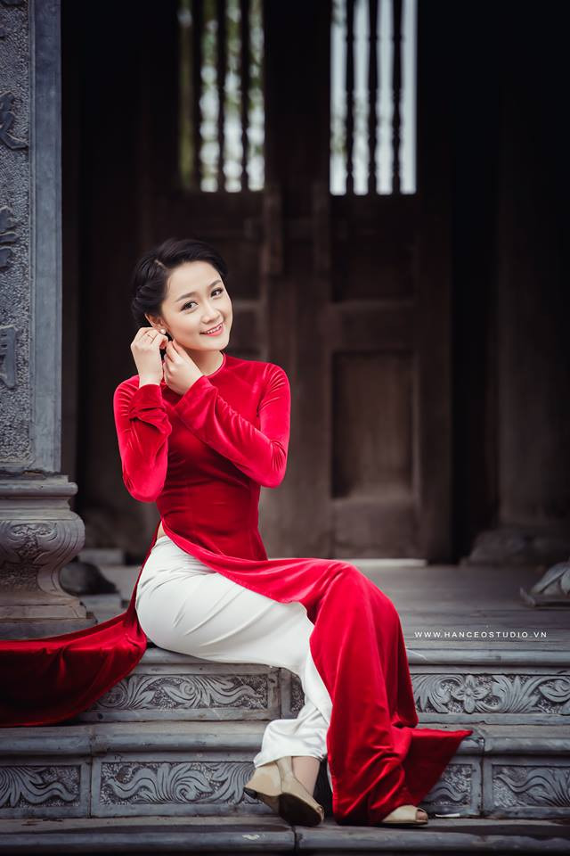 | Chỉ với áo dài thôi, Thu Hà cũng khoe trọn được đường cong và nét xuân thì của mình |