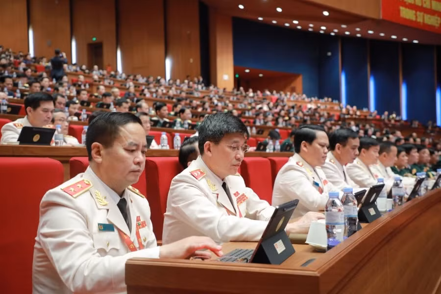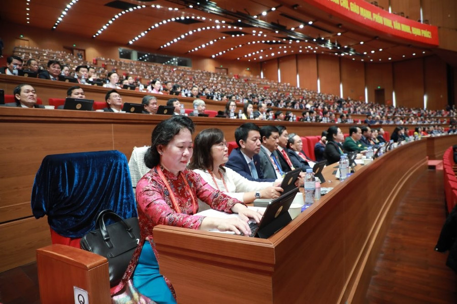 Các đại biểu dự Đại hội nghe thảo luận tại Hội trường về các Văn kiện Đại hội XIV của Đảng. Ảnh: Trần Vương