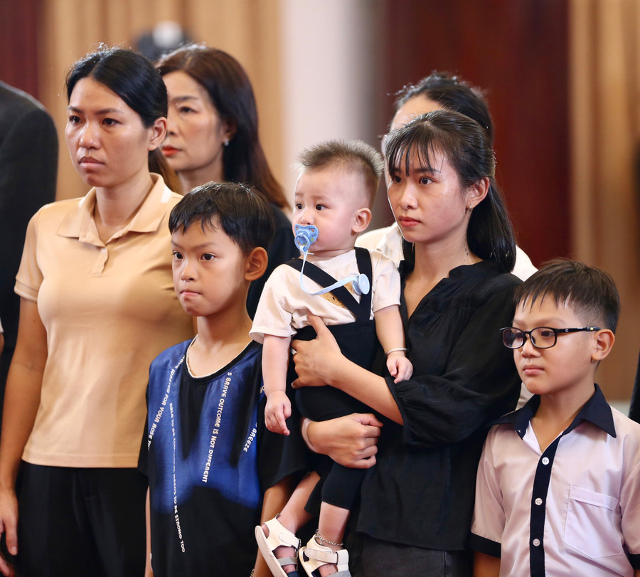 | Không ít phụ huynh đưa con, cháu của mình vào viếng và ghi sổ tang tưởng nhớ Tổng Bí thư |