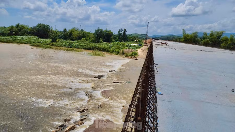 | Hiện cầu sông Vệ đã hoàn thành phần bên dưới và vượt lũ thành công trong mùa mưa lũ 2024. |