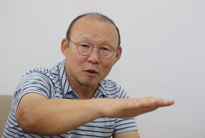 HLV Park Hang Seo trả lời phỏng vấn báo Tiền Phong sáng 2/5. (ảnh Anh N)
