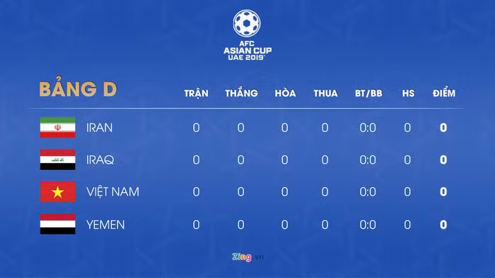 Trận đấu giữa đội tuyển Iraq và Việt Nam sẽ diễn ra lúc 17h30 (20h30 giờ Việt Nam). Đây cũng là trận mở màn của tuyển Việt Nam ở Asian Cup 2019.
