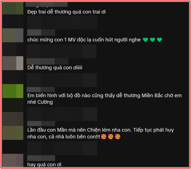 Hồ Văn Cường trong đoạn clip được nhận xét là ngày một điển trai, ngoại hình trưởng thành, chín chắn. Bên dưới đoạn clip, cộng đồng mạng đã để lại nhiều lời khen dành cho clip tạo trend của Hồ Văn Cường với sản phẩm âm nhạc mới.