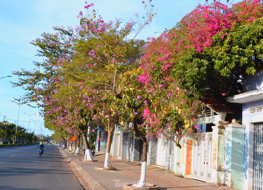 Những cánh hoa trong nắng càng tô đậm vẻ đẹp kiêu sa khiến cả tuyến đường như khoác lên một màu áo mới của mùa xuân.