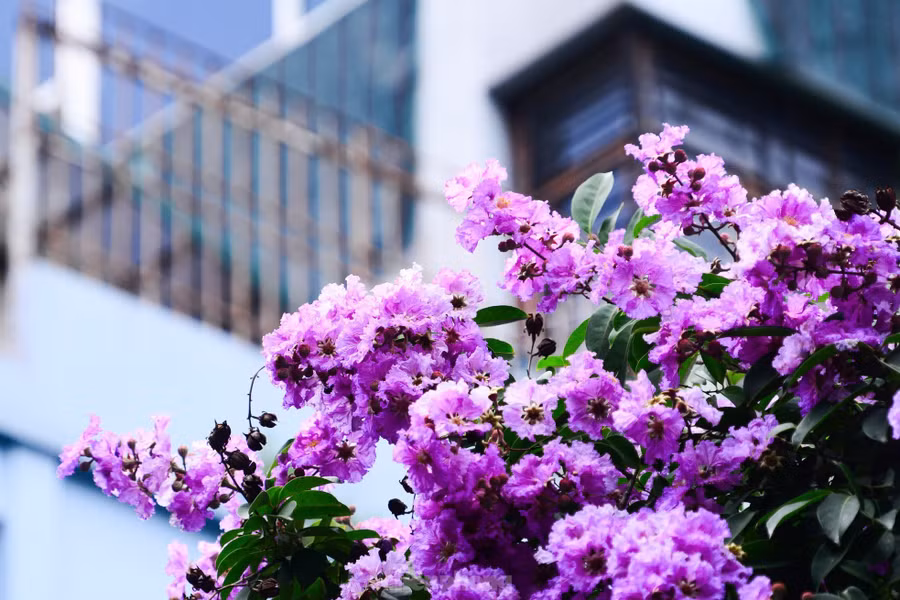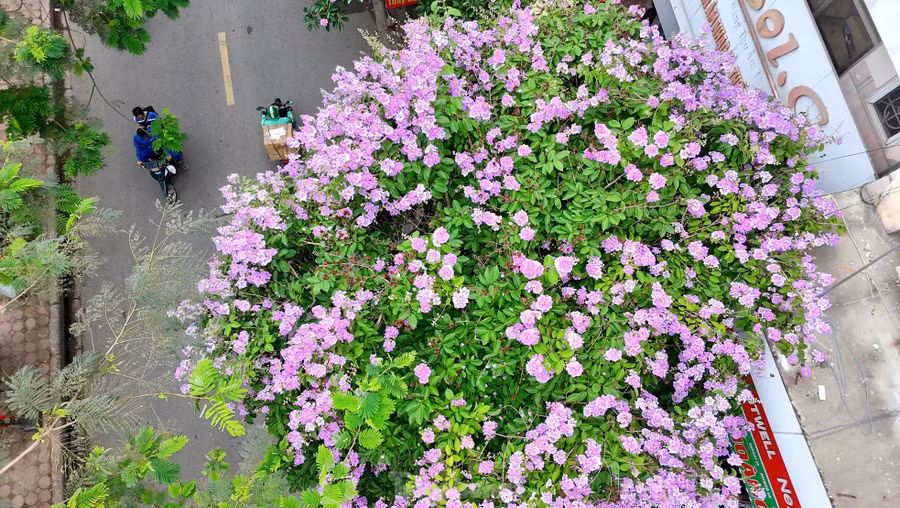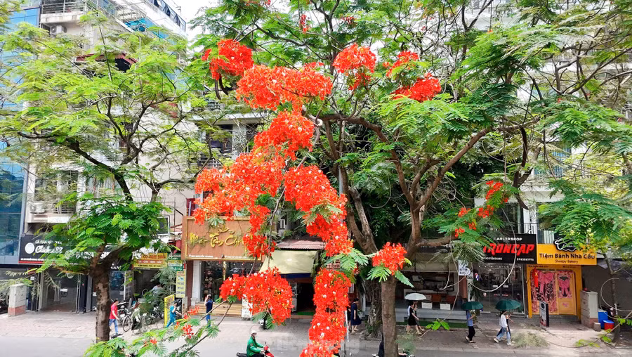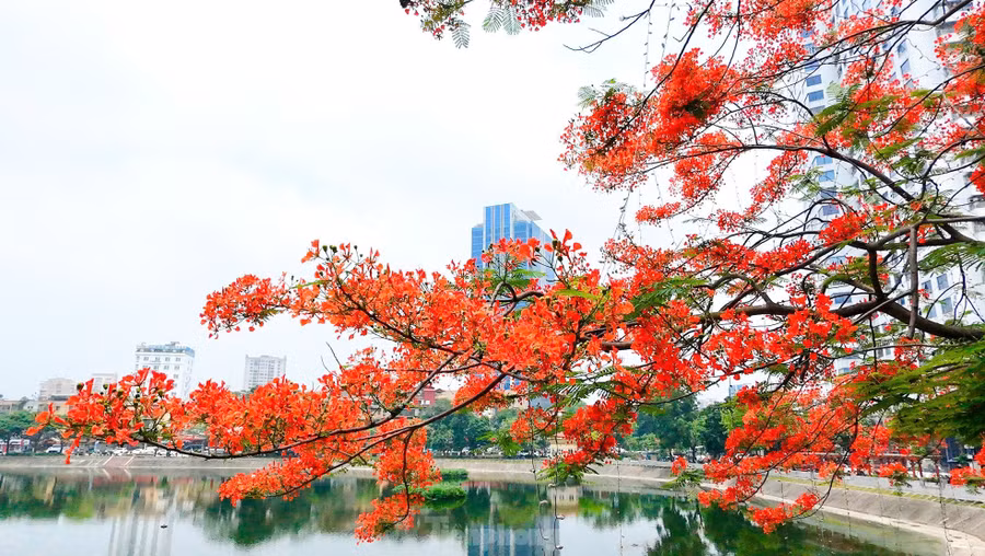 Hè về, phố phường Hà Nội lại khoác lên mình tấm áo rực rỡ với màu tím của hoa bằng lăng và màu đỏ của phượng vỹ.