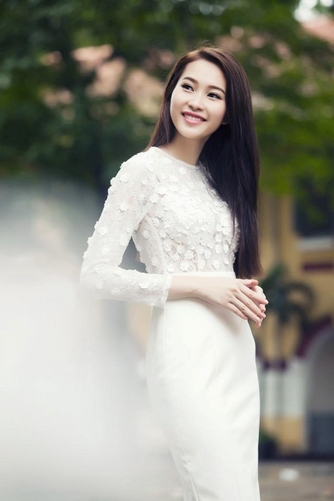Sau một thời gian vắng bóng, Hoa hậu Việt Nam 2012 trở lại với bộ ảnh mới nền nã và dịu dàng cùng những thiết kế gam màu trắng tinh khôi.