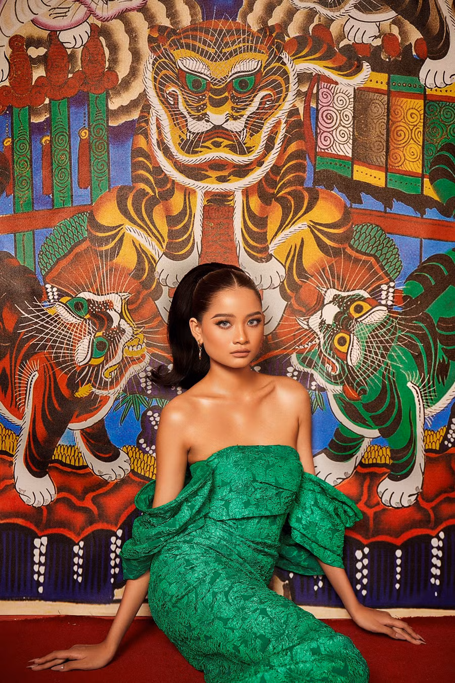 Hình ảnh ngũ hổ với sự uy nghiêm, linh thiêng hàm chứa sức mạnh và sự dũng mãnh mang đến cho bộ ảnh chào năm 2022 của H'Hen Niê và các học trò nhiều ý nghĩa.