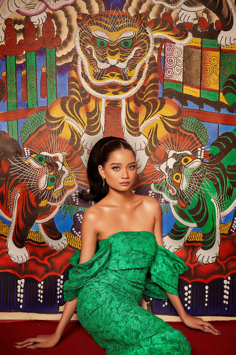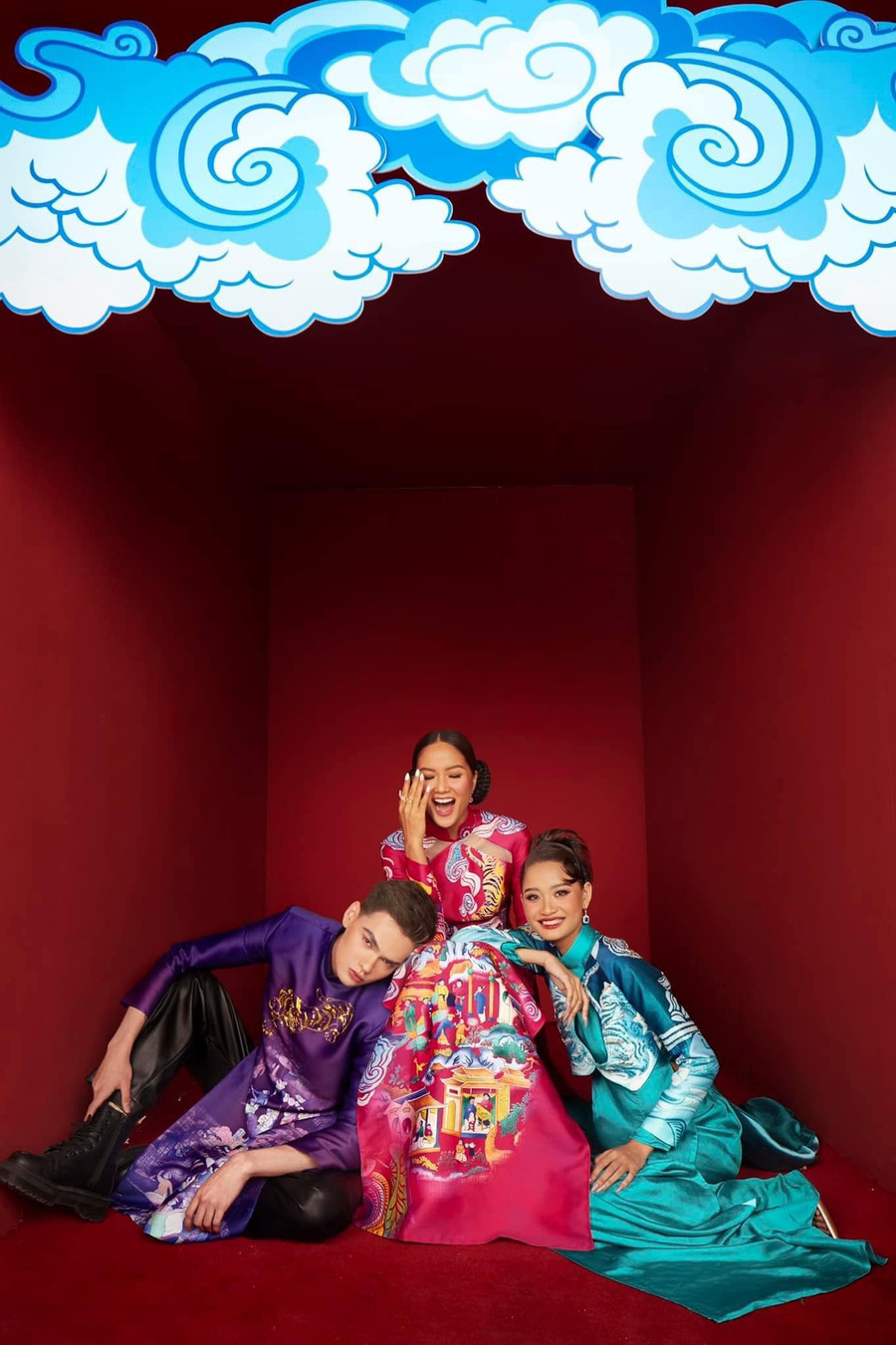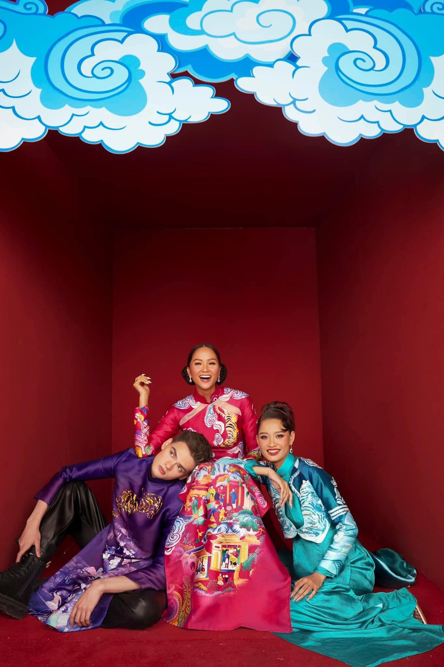 Trong bộ ảnh mừng Tết Nguyên đán Nhâm Dần 2022 chụp cùng hai học trò là Stephen Nguyễn và Thanh Tuyền, Hoa hậu H'Hen Niê chọn concept ngũ hổ khi diện những trang phục có tông màu nóng rực rỡ.