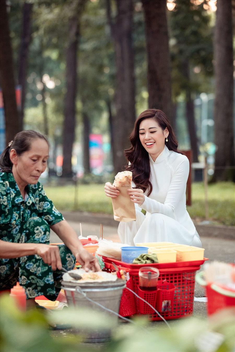 | Hoa hậu Khánh Vân còn ghé lại bên những hàng quán rong mà cô thường xuyên đến mỗi khi rảnh rỗi. Ảnh: David Sắn. |
