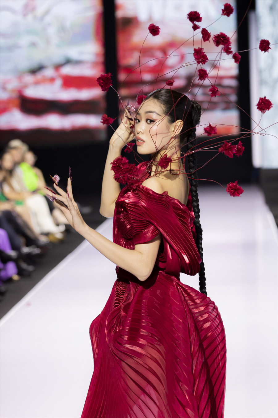 | Hoa hậu Khánh Vân có màn trình diễn ấn tượng tại tuần lễ Thời trang quốc tế Việt Nam 2022. Ảnh: Ban tổ chức. |
