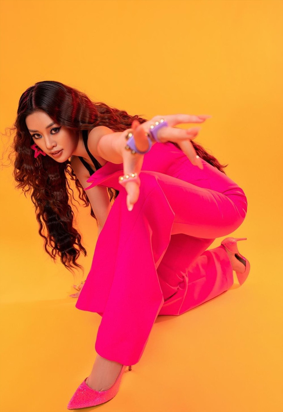 Kết hợp giữa trang phục màu hồng nữ tính có kiểu dáng phá cách và layout trang điểm cá tính, năng động, Hoa hậu Khánh Vân thể hiện sự bứt phá của một cô gái thoát khỏi những khuôn khổ thường thấy.