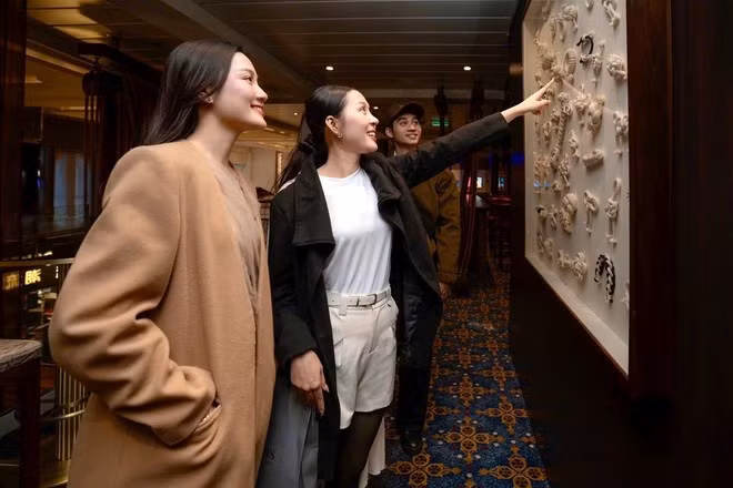 Để tối ưu trải nghiệm dành cho du khách, ẩm thực tiêu chuẩn quốc tế trên con tàu 5 sao được quan tâm chú trọng. Theo đó, các người đẹp đã có cơ hội thưởng thức tới hơn 20 nhà hàng từ Á đến Âu, quán bar và phòng chờ được thiết kế phù hợp dựa trên trải nghiệm khách hàng trên tàu. Điều đặc biệt, các người đẹp cho hay, du khách được mua sắm hàng hiệu miễn thuế ngay trên đại dương.