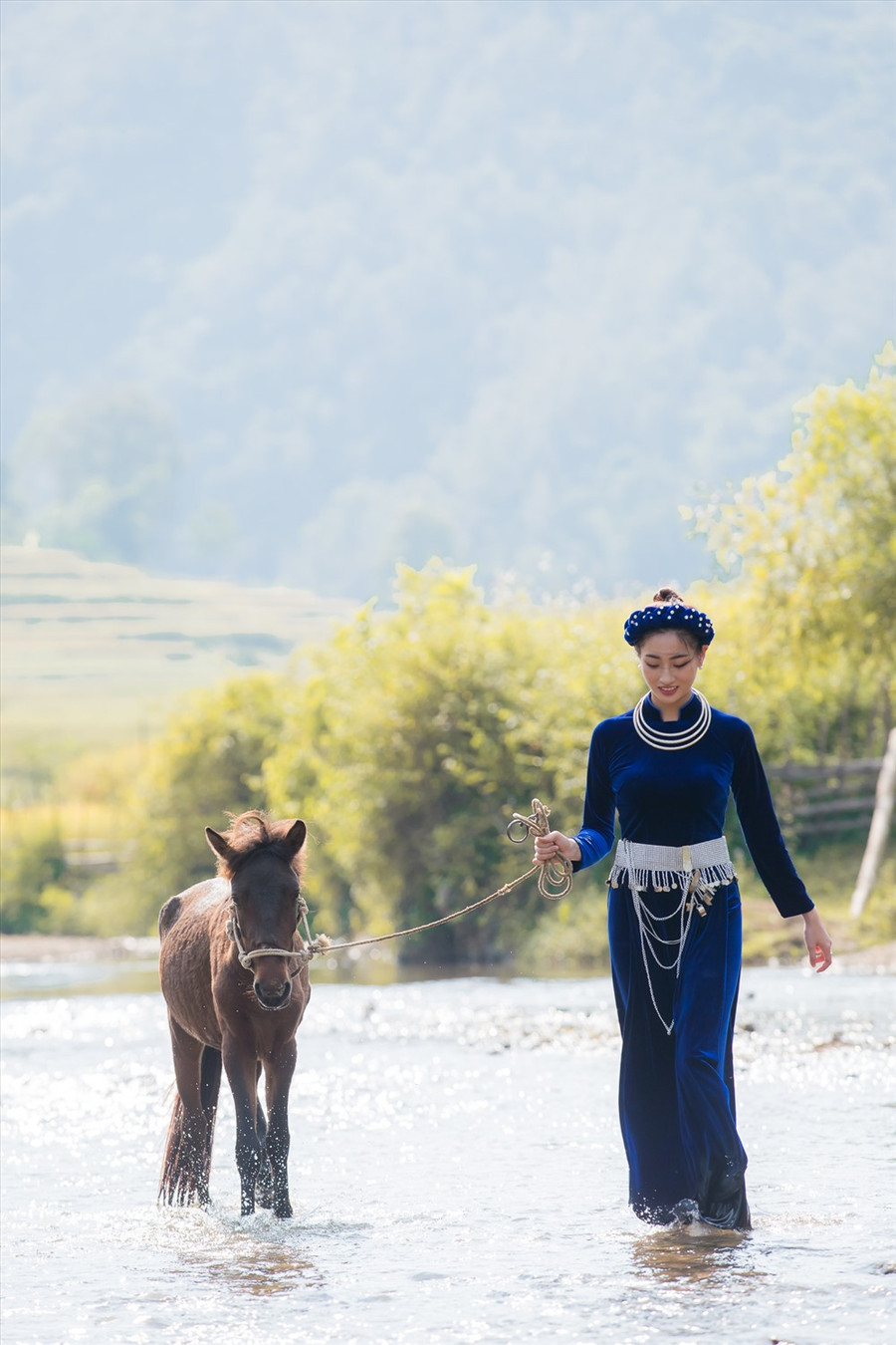 | Hoa hậu sinh năm 2000 gây ấn tượng khi hoá thân thành thiếu nữ người Tày xinh đẹp, mang những nét văn hoá đặc sắc của Cao Bằng nói riêng và Việt Nam nói chung giới thiệu đến bạn bè quốc tế. Ảnh: Minh Đức. |