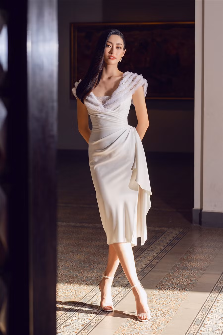 | Chiếc váy cúp ngực tông trắng giúp người đẹp toát lên nét đẹp u buồn, ma mị. |