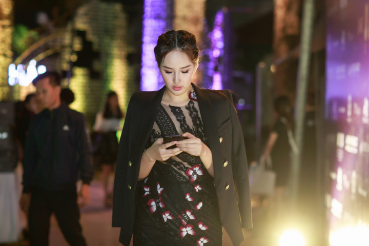 Người đẹp kết hợp chiếc đầm gợi cảm cùng blazer thanh lịch.