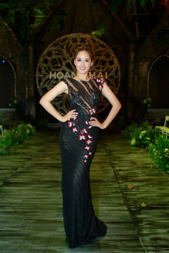 Hoa hậu diện đầm đuôi cá tông màu đen huyền bí, trang trí chi tiết ren đan xen cùng đường thêu sắc sảo.