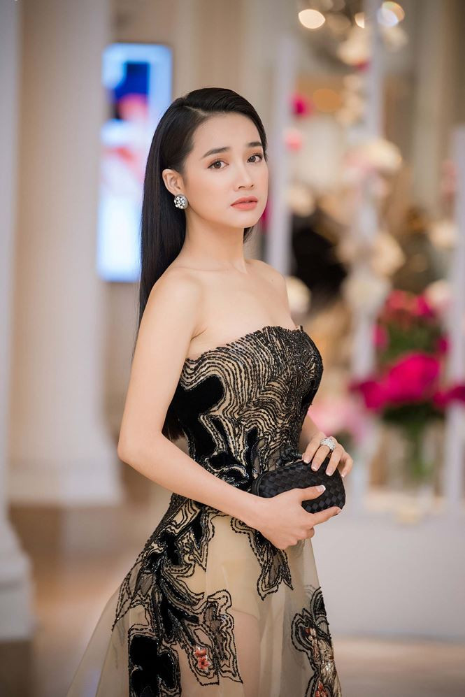 Cô diện bộ váy cúp ngực khoe vai trần gợi cảm.
