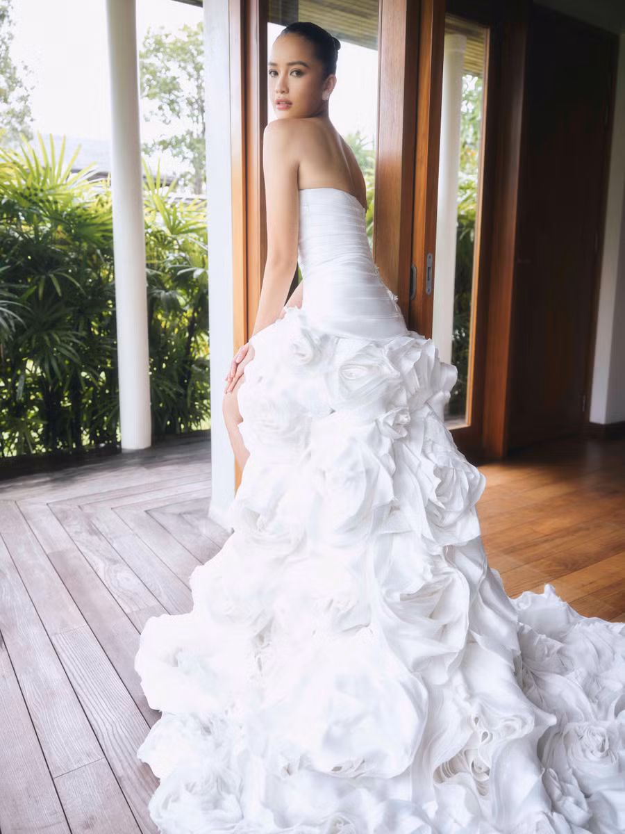 Bộ ảnh váy cưới kết hợp giữa Hoa hậu Ngọc Châu và Lê Thanh Hòa nhận nhiều lời khen từ fans hâm mộ.
