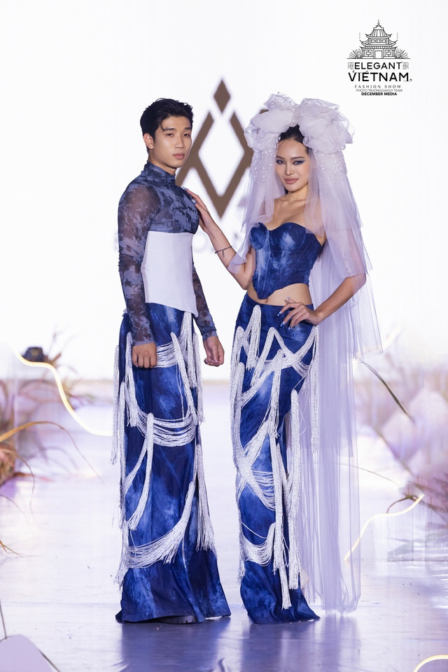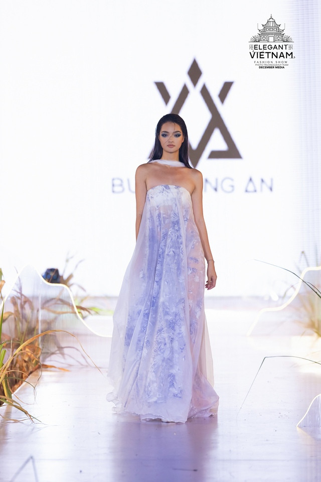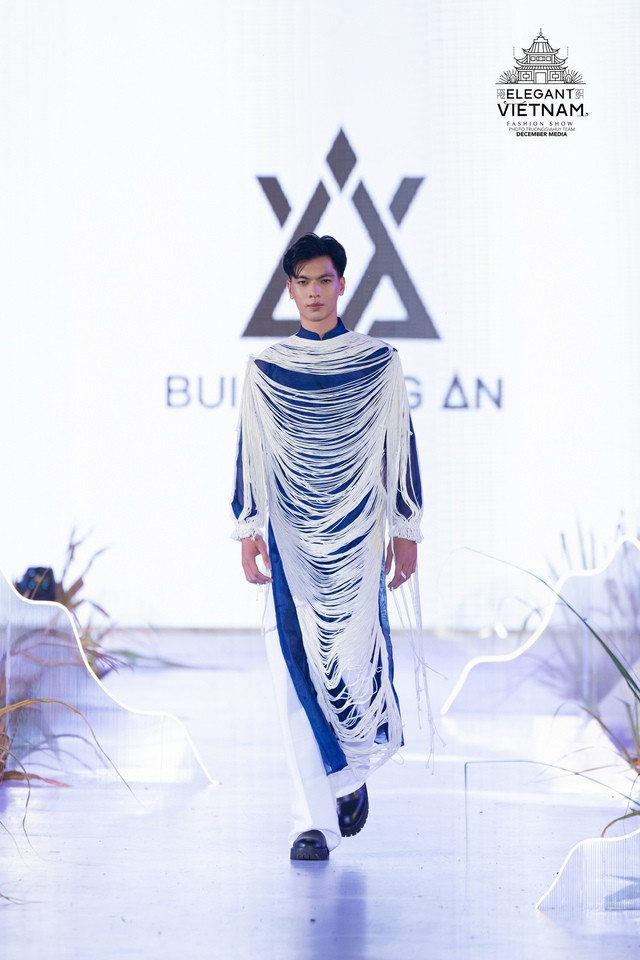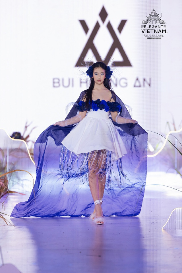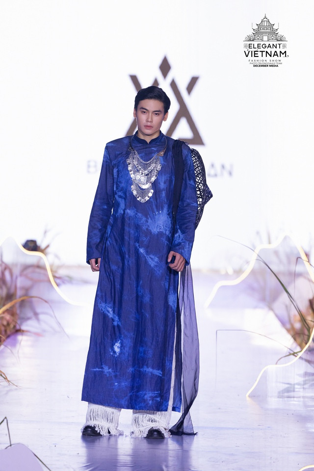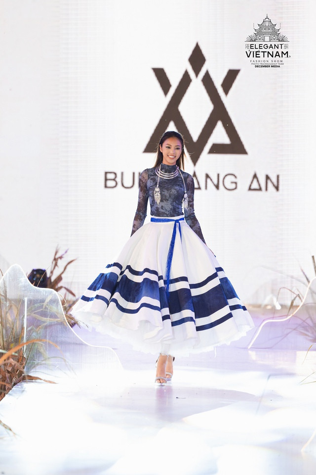 Trong đó, nhà thiết kế Bùi Hoàng Ân mang đến bộ sưu tập tên "Dệt nắng chàm", lấy cảm hứng từ màu sắc vải lanh nhuộm chàm thủ công và vẻ đẹp của những họa tiết truyền thống của người dân xứ Đông Bắc Hà Giang. Hoa hậu Các dân tộc Việt Nam 2022 Nông Thúy Hằng là người đẹp trình diễn mở màn cho bộ sưu tập.