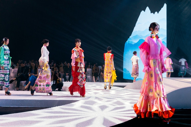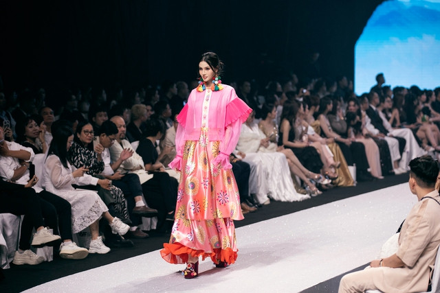 Tại Vietnam Beauty Fashion Fest Allstar, nhà thiết kế Thủy Nguyễn mang đến bộ sưu tập mang tên Tơ hồng, mượn cảm hứng từ truyền thuyết dân tộc Thái kể về câu chuyện tình yêu của một người con gái mang tên hoa Ban và chàng Khum, cũng như vẻ đẹp của thiên nhiên, núi rừng Tây Bắc - sống động và mộng mơ qua chiếc khăn Piêu.