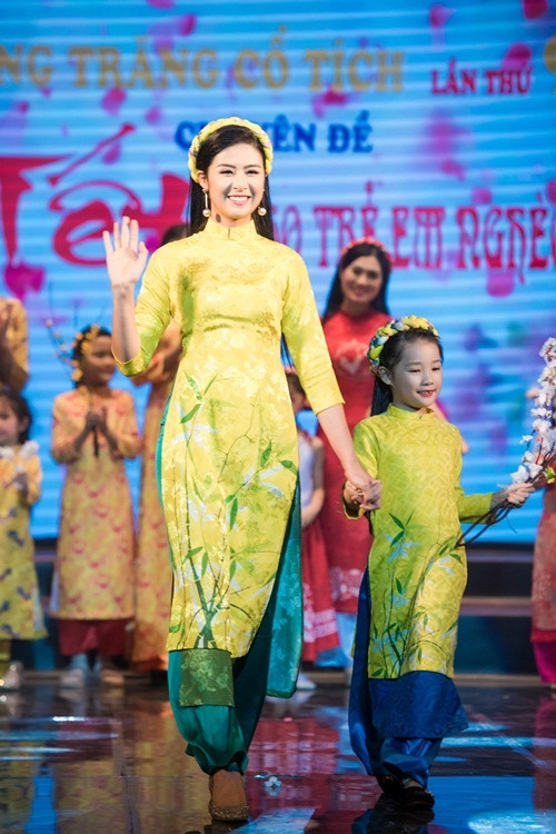 | Ngọc Hân đảm nhận vị trí MC và vai trò đại sứ chương trình. Hoa hậu cho biết cô đã đồng hành cùng dự án nhiều năm qua với mong muốn góp phần hỗ trợ cuộc sống cho nhiều em nhỏ có hoàn cảnh khó khăn. Tại sự kiện, Ngọc Hân còn giới thiệu bộ sưu tập áo dài Tết Đinh Dậu cô mới thực hiện. |