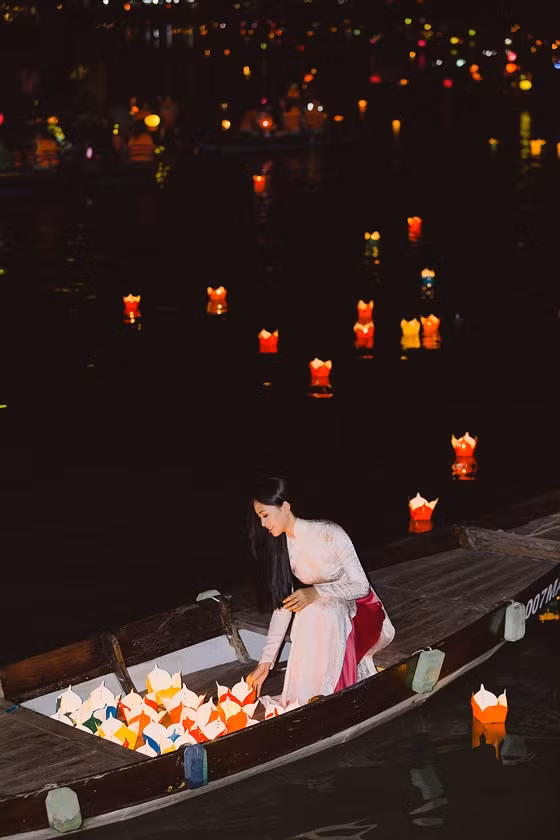 | Tiểu Vy duyên dáng với áo dài và nón lá |