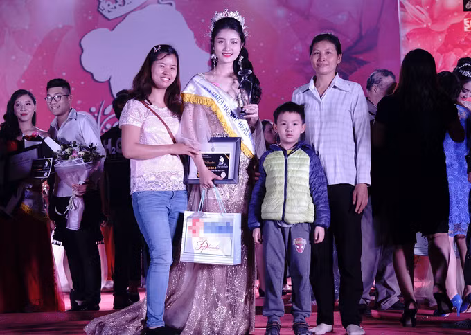 Bố Huyền qua đời từ khi em học lớp 8. Mẹ quyết định đưa hai chị em từ Ba Vì xuống trung tâm thủ đô để có điều kiện học tập tốt hơn. Khi được xướng tên ở đêm chung kết hoa khôi ngày 25/3, dù không được xuống sân khấu, em và mẹ vẫn đưa tay như thể đang được chạm vào nhau để chia sẻ hạnh phúc. "Đó là giây phút em không bao giờ quên", Huyền nói.