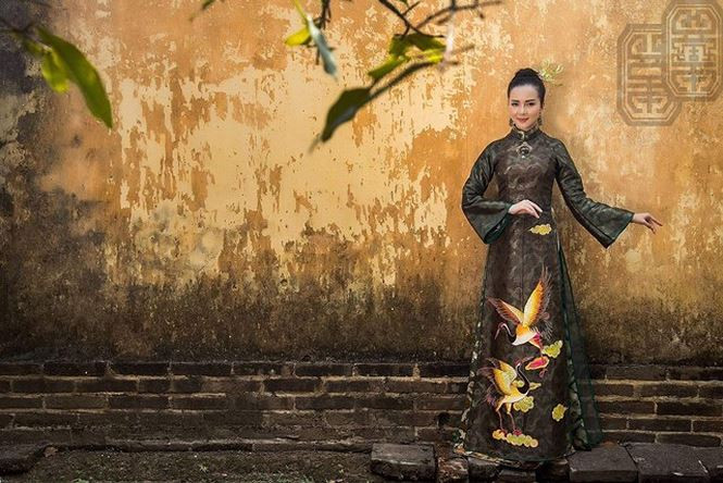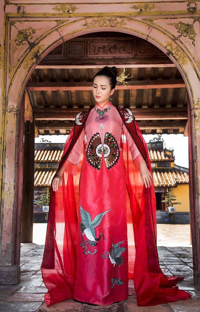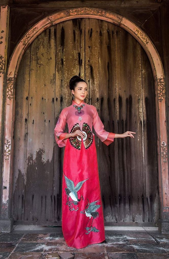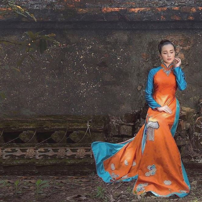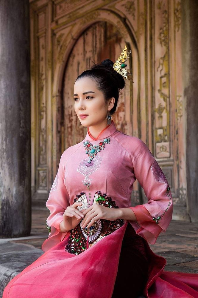 Trong bộ áo dài kiểu cung đình xưa, Hoa khôi Huỳnh Thúy Vi đã thể hiện nét vừa quý phái, vừa dịu dàng của người con gái đất Việt.