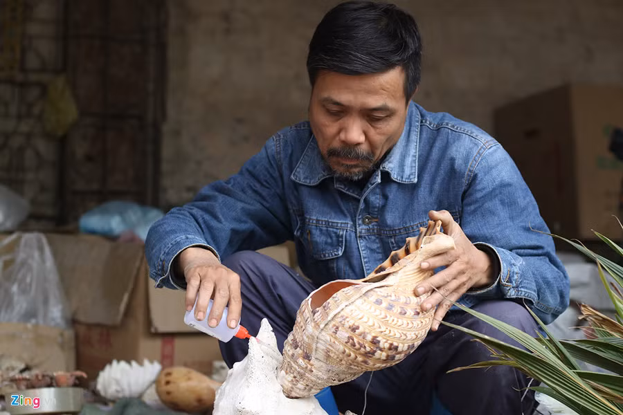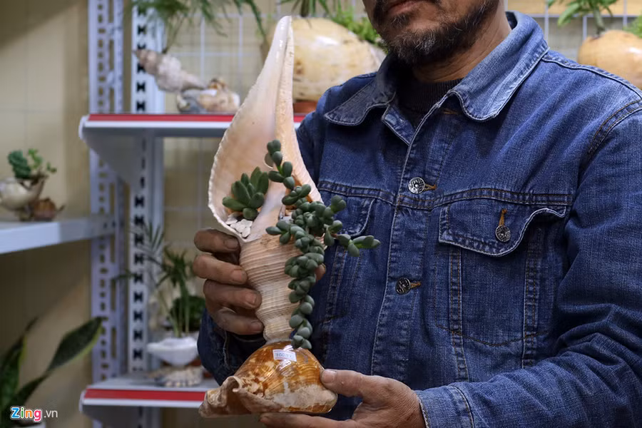 Sưu tầm, mua những vỏ ốc từ biển về nhà, một người đàn ông ở Hà Nội đã biến nó thành các tác phẩm cây kiểng đẹp mắt phục vụ Tết Mậu Tuất.
