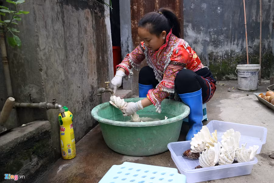 Sau đó vỏ ốc, sò được mang rửa, làm trắng và nhồi đất, trồng cây kiểng vào trong.
