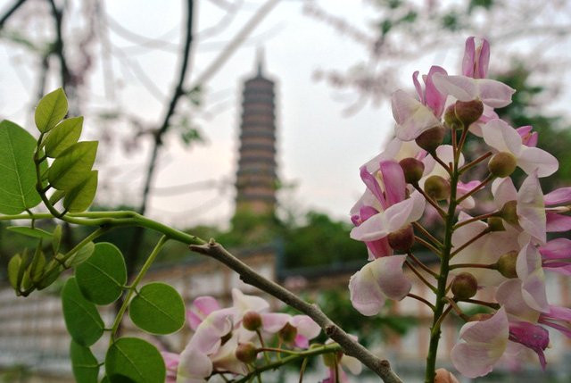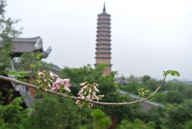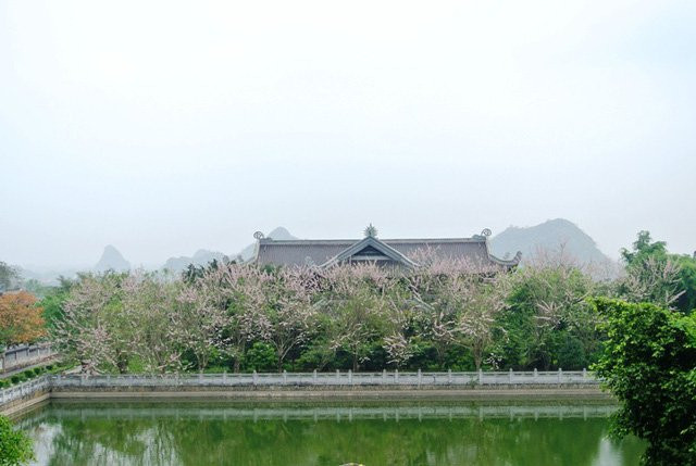 Không rõ tên thật là gì nhưng nhiều người vẫn gọi loài hoa đang nở rộ ở chùa Bái Đính là hoa hồng mai bởi cánh mong manh như cánh hồng, lại có màu trắng hồng giống hoa mai miền Bắc.