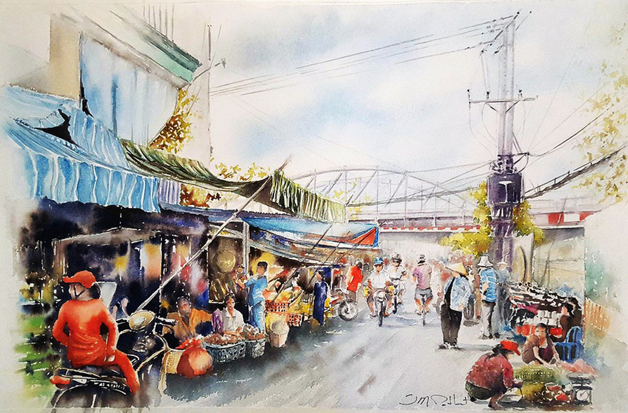 Họa sĩ người Pháp Jean-marc Potlet 62 tuổi đã phải lòng mảnh đất hình chữ S này từ năm 2015 trong một chuyến sang VN, để rồi từ đó, ông liên tục vẽ về VN sau khi trở về Pháp. Ông đã có dịp trao đổi với độc giả TTO.
