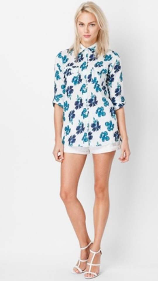 Những bông hoa đủ màu sắc trang nhã với nhiều kích cỡ khác nhau luôn là một trong những kiểu họa tiết góp phần tạo nên phong cách rõ ràng nhất cho những kiểu áo sơ mi nữ đẹp. Toát lên vẻ nữ tính vốn có từ những hình in họa tiết kiểu hoa, bạn vẫn có thể biến tấu phong cách của mình “bụi bặm” hơn một chút bằng cách phối cùng short ngắn, đi cùng boot cổ thấp và chọn cho mình một chiếc túi đeo tùy ý vì set đồ này rất dễ lựa chọn phụ kiện để phối cùng. Bảo đảo bạn vẫn trông rất đáng yêu và dịu dàng nhưng cũng rất cá tính và thời trang nữa đó.