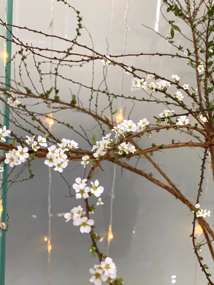 Tuyết mai tạo cho gian phòng của bạn cảm giác mộc mạc, tao nhã, thư thái khi thưởng trà, ngắm hoa. Từng bông trắng nhỏ li ti như những bông tuyết đọng trên cành cây thanh mảnh, ngửi kỹ thấy mùi thơm nhè nhẹ, xen cả mùi thơm của gỗ.