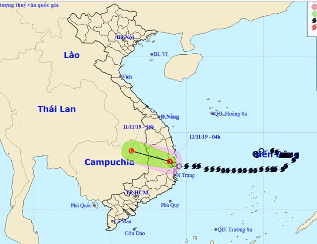 Hồi 4 giờ ngày 11-11, vị trí tâm áp thấp nhiệt đới ở khoảng 13,1 độ vĩ bắc; 108,9 độ kinh đông, ngay trên đất liền khu vực các tỉnh Nam Trung Bộ. Sức gió mạnh nhất vùng gần tâm áp thấp nhiệt đới mạnh cấp 6 (40-50 km/giờ), giật cấp 8.